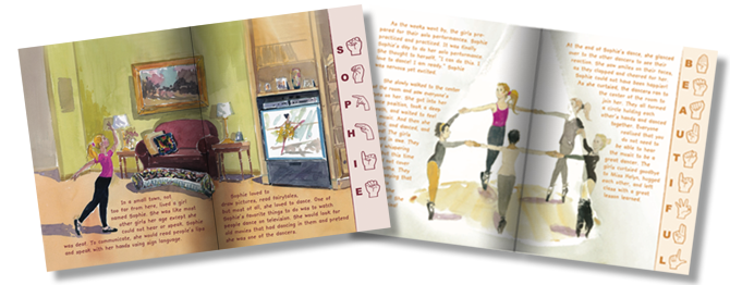 This is a story of a young deaf girl overcoming obstacles and having a positive attitude while achieving her goal of learning how to dance. Sophie is a girl who loves to dance. She receives a flyer in school about a new dance class being offered. When Sophie arrives to dance class, the other girls are confused when they see her talking with her hands. They immediately think that because she is deaf, she can not dance. To help the girls see through Sophie's eyes, the dance teacher Miss Helyn, has the girls dance without music or verbal instructions. The girls are surprised how hard it was to dance without sound, and embrace Sophie for her ability to dance.